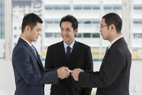 Schimbul de cărți de vizită este un ritual bine stabilit în Japonia. Directorii străini sunt încurajați să-l preia, pentru a nu jigni, în mod neintenționat, potențialii clienți sau parteneri. În practică, „meishi” înseamnă să scoți o carte de vizită din suportul special – nu din buzunar sau din portofel – să faci schimbul cu mâna dreaptă, să-ți arunci ochii pe cartea pe care ai primit-o și, eventual, să discuți pe marginea informațiilor obținute.