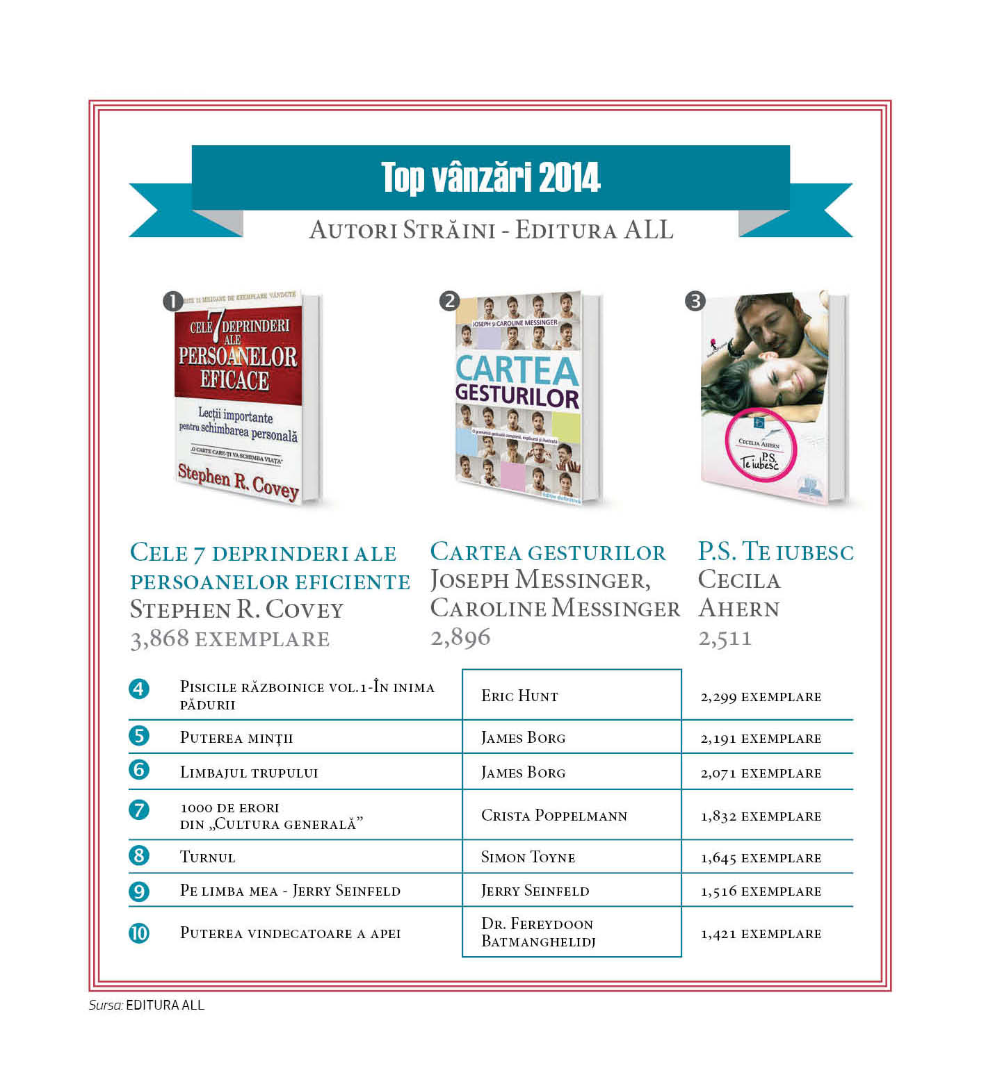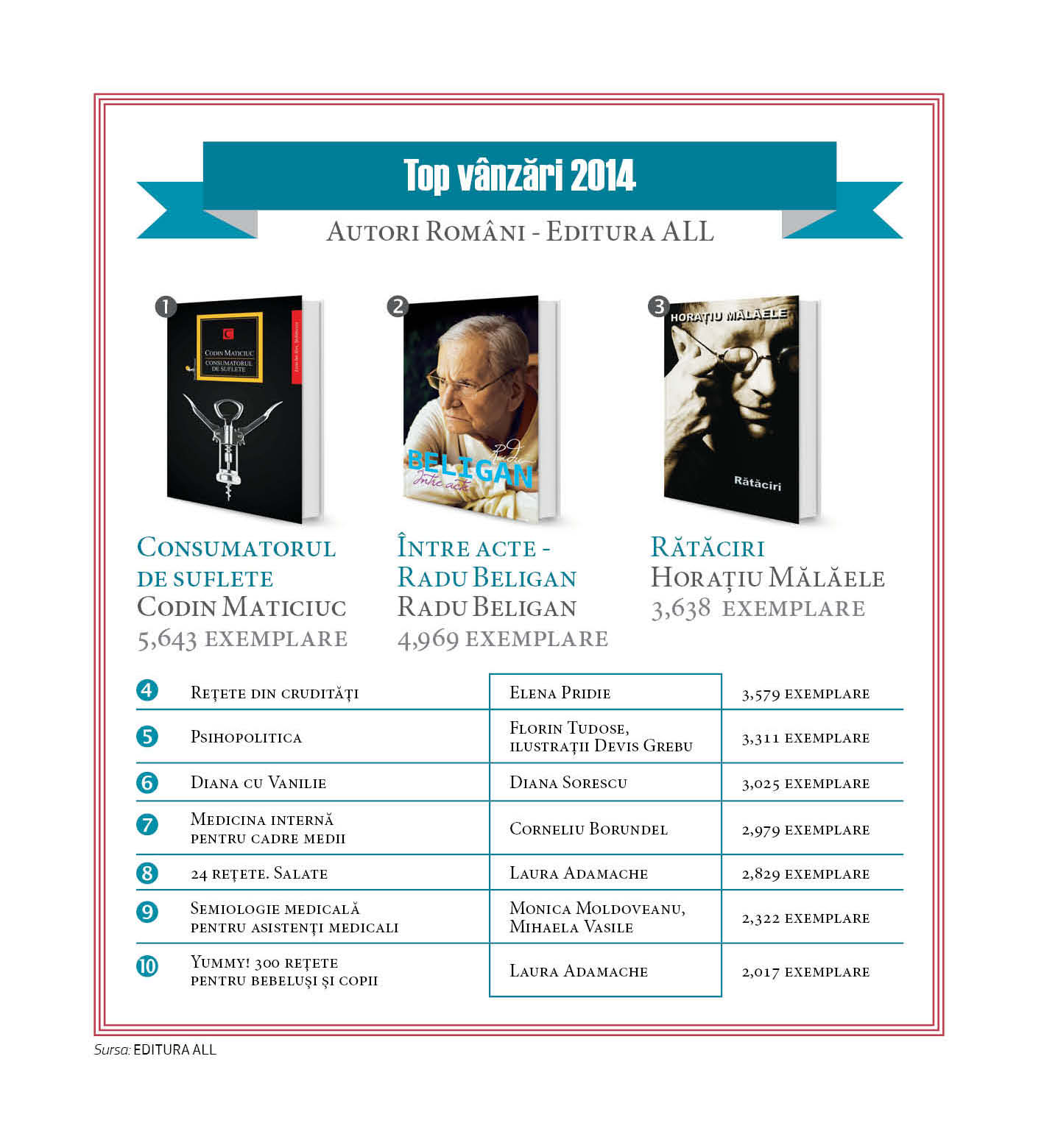 GALERIE FOTO: Topul celor mai vândute cărți de autori români, în 2014