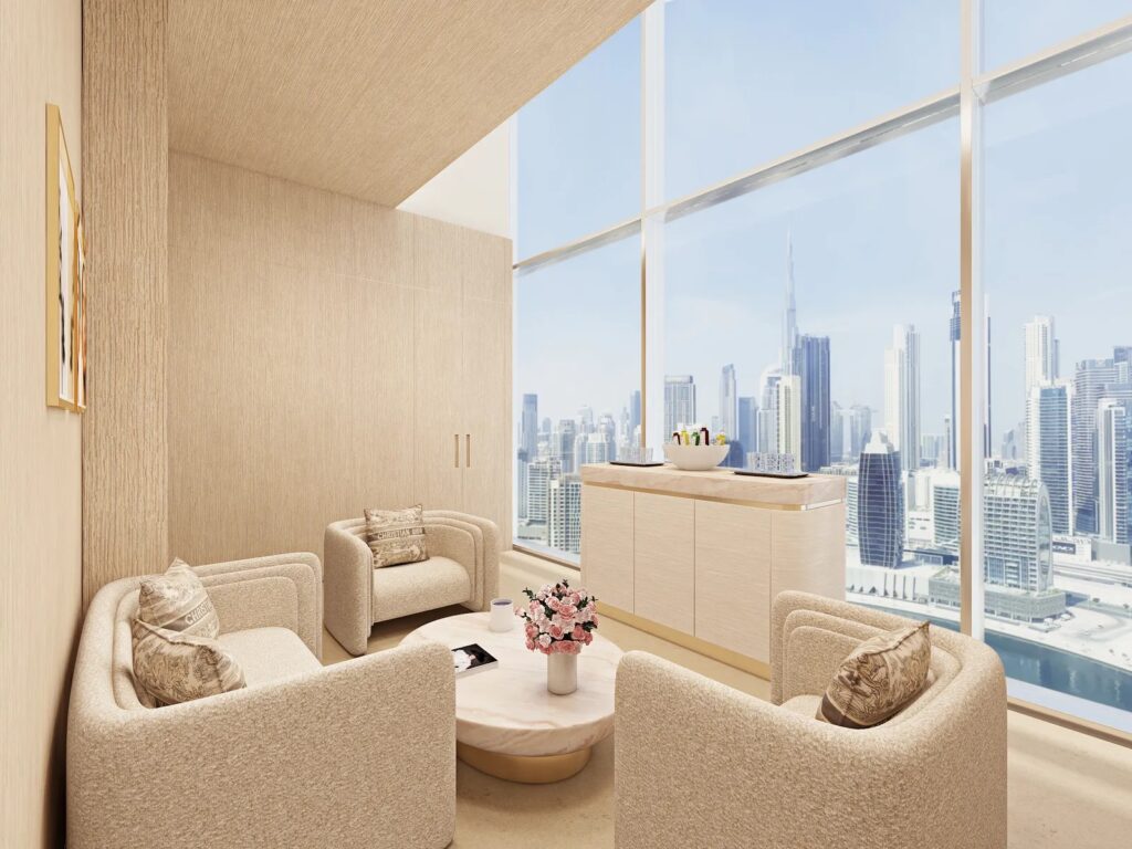 Situat la etajul 29 al hotelului recent construit în Dubai, Dior Spa The Lana se scaldă în lumina naturală care conturează grațios spațiul, oferind în același timp priveliști panoramice spre Burj Khalifa, încadrate în ferestrele largi ale camerelor.