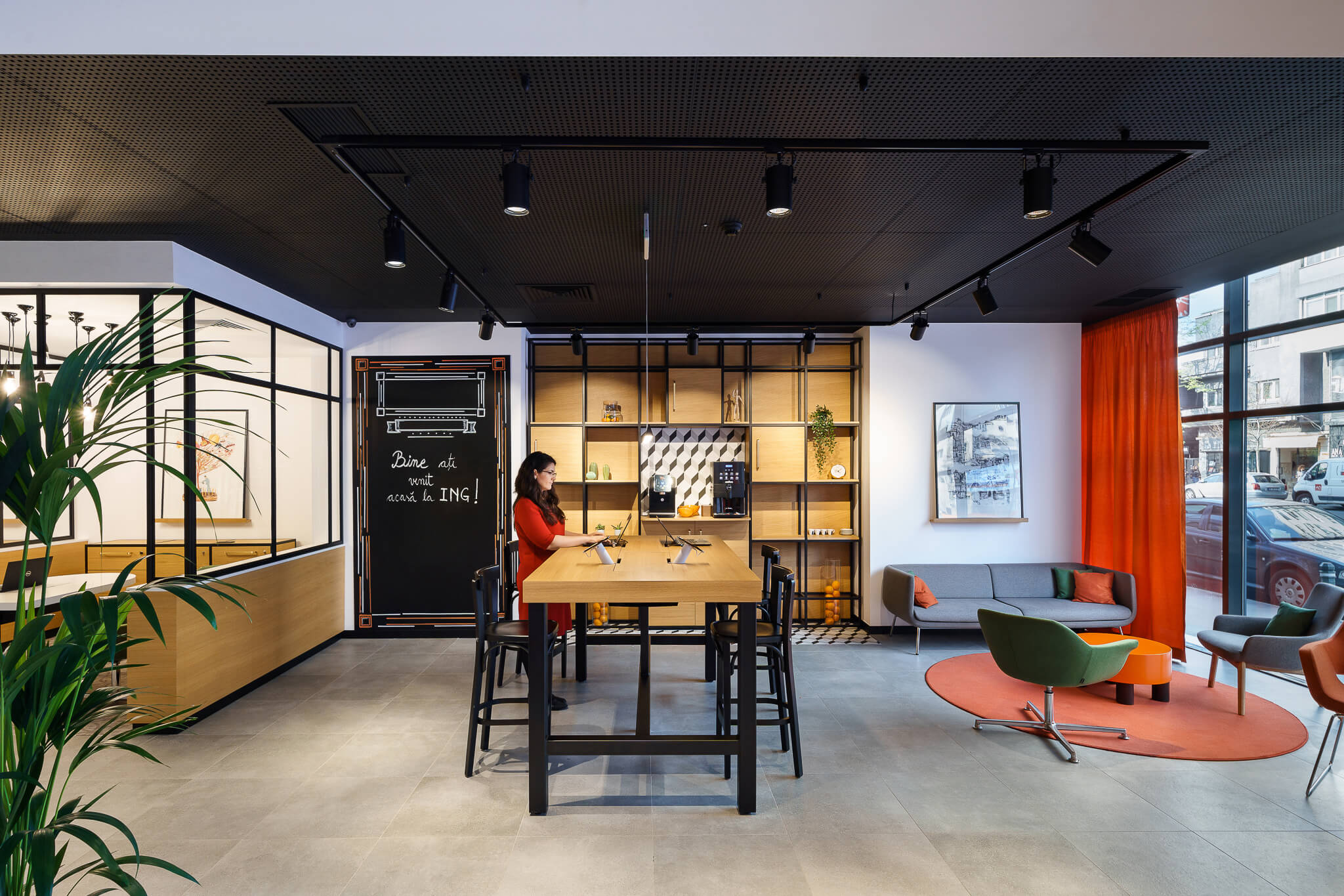Noul design al office-ului aduce spații ca inima ING – zona de întâmpinare unde clienții devin musafiri în casa ING; zona digitală – pentru facilitarea operațiunilor și tranzacțiilor bancare digitale; zonele semi-private – birouri deschise pentru consultanță personalizată într-un mediu primitor, precum și zona privatăpentru discuții cu un grad mai mare de complexitate. Prin urmare, clienții nu vor mai intra într-un sediu căutând un birou sau un ghișeu, ci vor fi întâmpinați și direcționați în funcție de solicitările lor și se pot bucura de o cafea bună pregătită în office înainte de a fi preluați de consultantul potrivit.