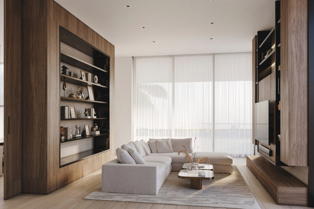 Clădirea adăpostește 84 de unități rezidențiale, inclusiv apartamente pe jumătate de etaj, apartamente pe întregul etaj și un penthouse spectaculos. Fiecare locuință este proiectată cu atenție la detalii, cu spații deschise și ferestre „full” care oferă vederi panoramice asupra Biscayne Bay și orașului Miami. La etajele superioare există un centru acvatic cu piscină interioară și o zonă de lounge cu vedere panoramică, un spa și centru de fitness, dar și un heliport privat, oferind acces rapid și convenabil pentru rezidenții care pun preț pe discreție totală.