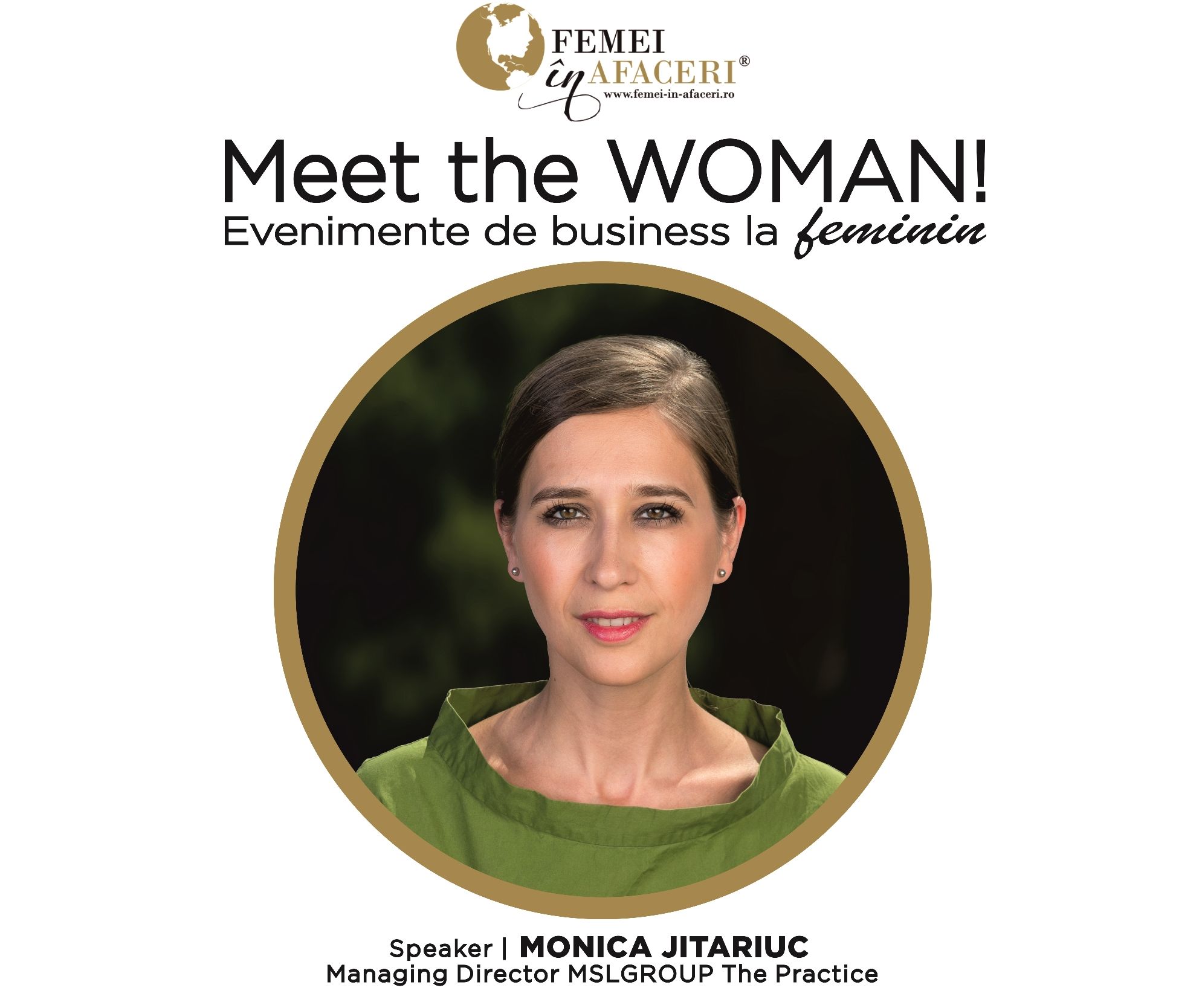 Meet the WOMAN! este un eveniment de business networking ce are loc lunar şi se adresează atât antreprenoarelor, cât şi femeilor care lucrează în companii şi sunt specialiste într-un domeniu de activitate.