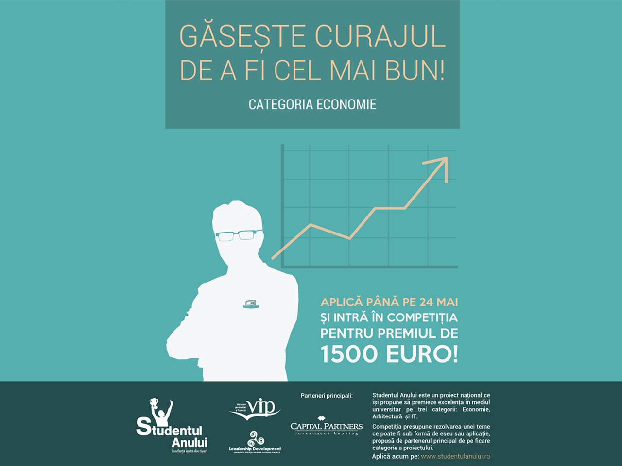 Una dintre categoriile de concurs ale proiectului Studenul Anului este Economia, susținută de Capital Partners. Aceasta oferă cadrul favorabil pentru cei care studiază diferite domenii, precum economie, afaceri, management, finanțe, politică. Tema de anul acesta face referire la șansele antreprenorilor români într-o economie globalizată, fără frontiere.