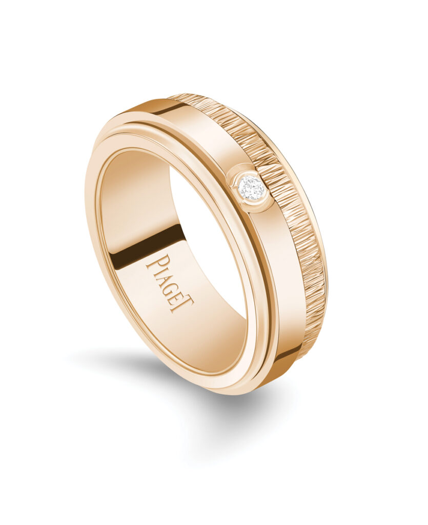 La acest din urmă procedeu decorativ voiam să ajung: texturarea aurului sau tehnica Palace Décor, care se numără momentan printre favoritele bijutierilor de la Piaget. Constituie una dintre caracteristicile care individualizează câteva dintre cele mai frumoase piese de azi ale brandului, dar nu este o tehnică nouă: Piaget îi explorează valențele expresive încă din anii ’60.