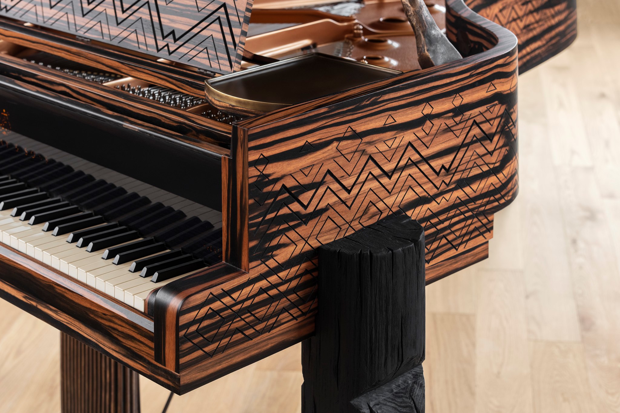 Kravitz are o colecție personală de artă care include sculpturi din Vestul Africii și spune că aceasta ar fi fost una dintre sursele de inspirație. Artistul a folosit motive tribale pentru pian, un imprimeu care imită pielea de ghepard pentru scaun, iar marginile sunt realizate prin suprapunerea a 15 straturi de lemn de arțar, accentuat cu două straturi de furnir de abanos Macassar. Lira care sprijină pedalele pianului este turnată în bronz solid la Modern Art Foundry din Queens, New York. Pentru fiecare exemplar în parte echipa Steinway & Sons a lucrat în jur de 200 de ore.