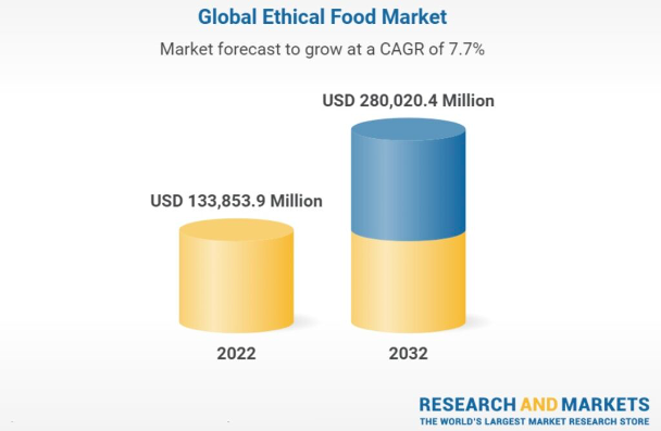 Potrivit raportului “Ethical Food Global Market Opportunities and Strategies to 2032” sectorul alimentelor etice a înregistrat o rată anuală compusă de creștere (CAGR – compound annual growth rate) de 6,0% începând din 2017.