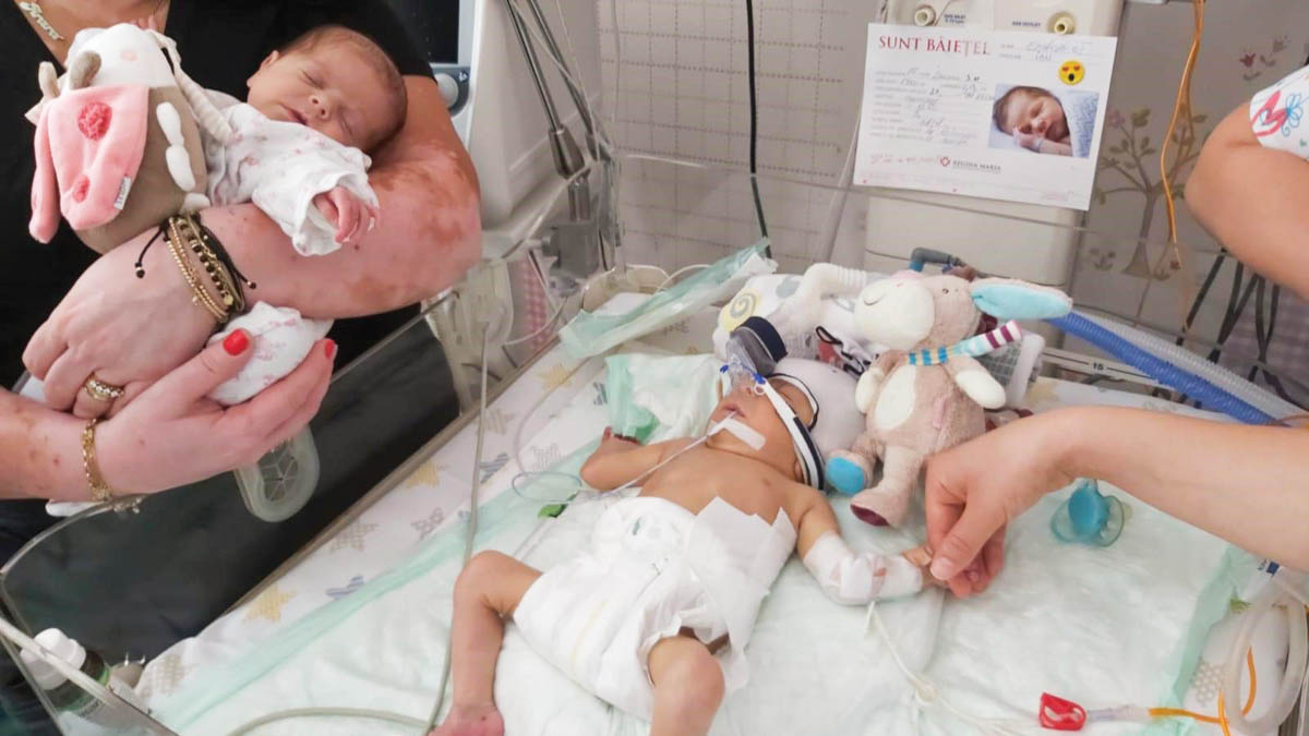 „În situația băiețelului ne-am confruntat cu un sindrom de detresă respiratorie, hemoragie cerebrală gradul I, anemie, infecţie materno-fetală, icter, retinopatie de prematuritate, defect septal atrial, și a trebuit să ne luptăm, pe rând, și cu insuficienţă renală, insuficienţă hepatică cu sindrom de colestază, repetate hemoragii pulmonare și, în final, cu bronhodisplazie pulmonară formă severă care nu permitea desprinderea lui de pe sistemele de ventilaţie deopotrivă invazive sau non-invazive”, a spus Dr. Dana Zaciu, medic primar Neonatologie, Șef Secție Terapie Intensivă Neonatală Spitalul Băneasa.