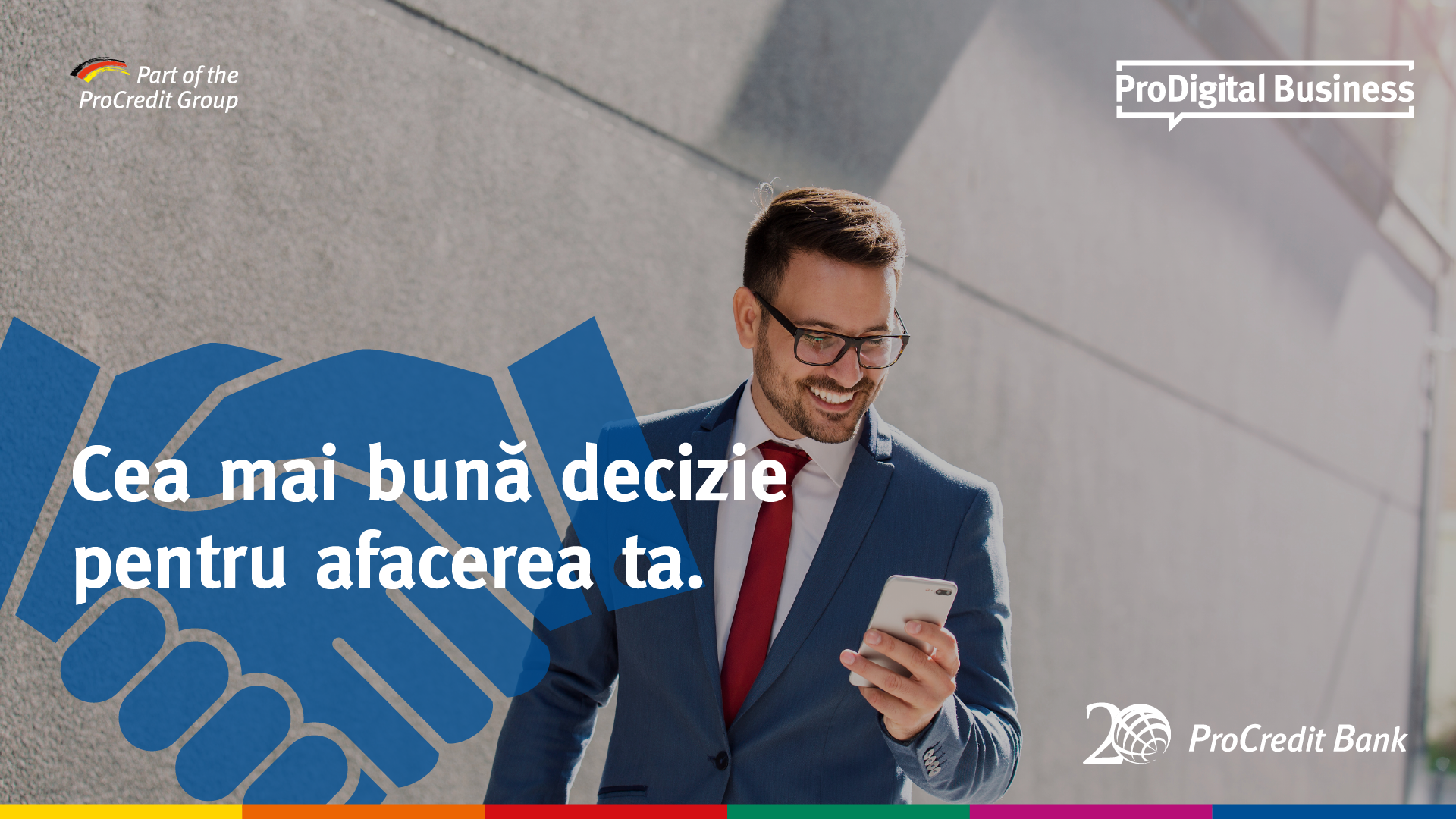 Lansarea platformei digitale vine în contextul aniversării a 20 de ani de activitate a instituției financiare în România. Singura bancă cu acționariat 100% german, ProCredit Bank încurajează deciziile potrivite pentru un viitor digital și sustenabil, atât în relația cu clienții persoane fizice, cât și cu cele juridice.