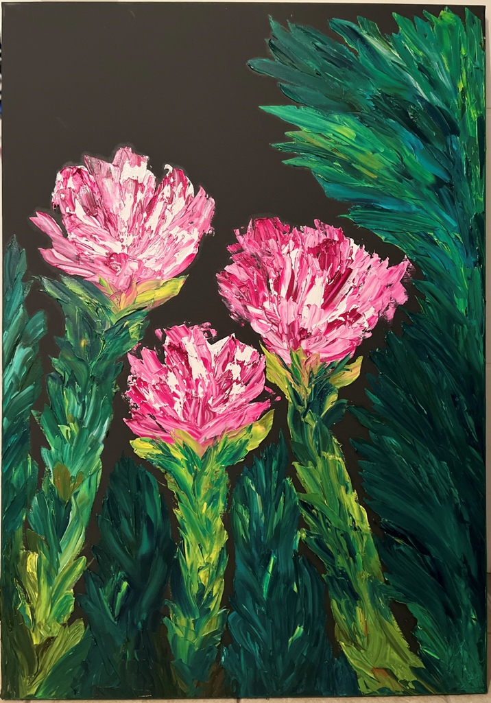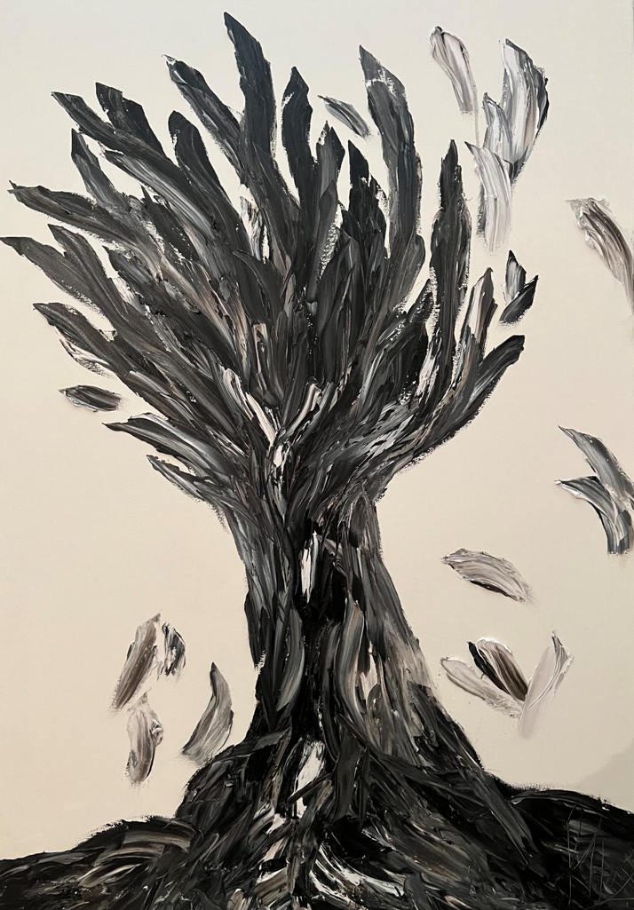 Expoziția „Rădăcini” a Kirei Hagi, în dialog cu poeziile scrise de Ioana Mocanu, face parte din programul de arte vizuale conceput de Ana Ștefania Andronic (BUZU), directorul artistic al Galeriei Senso.