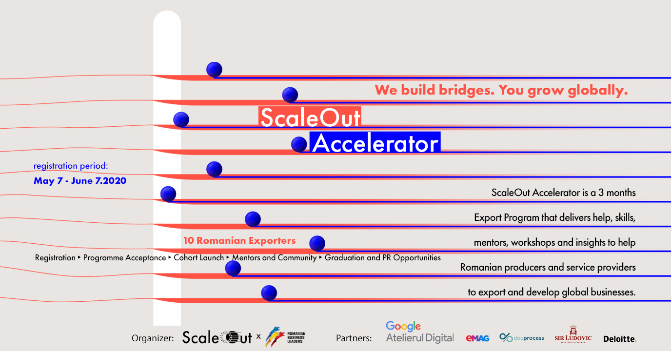 Prima cohortă, din care vor face parte 10 firme, va fi dedicată companiilor care fac deja business în străinătate sau vor să își extindă produsul prin activități de internaționalizare. Printr-o curriculă tailor-made, adaptată obiectivelor de extindere prin export ale fiecărui antreprenor în parte, acceleratorul se adresează firmelor care au deja un model de business viabil pe piața românească.