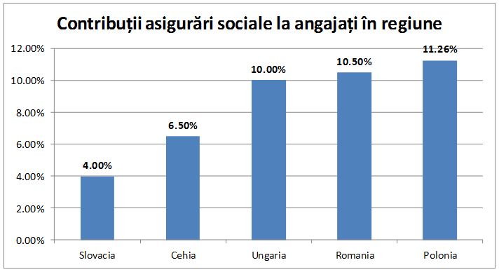 În ciuda reducerii CAS cu 5% la angajatori, România ar înregistra în continuare una dintre cele mai mari contribuții pentru pensii plătite de angajați în regiune, de 10,5%, comparativ cu slovacii sau cehii care au o cotă de reținere de doar 4% și respectiv 6,5%. Cele mai mari costuri cu plata pensiilor din regiune le au însă polonezii, care lunar contribuie cu 11,26% din salariul brut la fondul asigurărilor sociale.