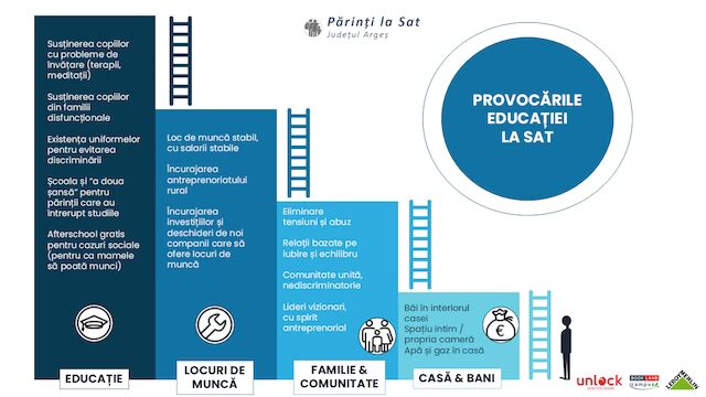 „Există o Românie profundă care stă ascunsă și pe care foarte puțini se încumetă să o exploreze. O Românie amorțită și blocată în zone rurale, unde oamenii sunt ancorați doar în prezentul căruia trebuie să-i supraviețuiască. Ei nu au o viziune pe termen lung, pentru că nu au pe ce să se bazeze. Nu există joburi stabile, oportunități de dezvoltare sau un plan de creștere al comunității. Unii reușesc să construiască vile frumoase, lucrând și inspirându-se din străinătate. Alții trăiesc într-o sărăcie incredibilă, în case insalubre și dărăpănate, cu mame aflate în depresie pentru că nu pot munci și mai sunt și chinuite de soții alcoolici sau violenți, cu copii cu ochi triști și care nu știu încotro să o ia. Cei mai mari prind curaj și ʻse cerʼ în plasament, lăsându-i pe părinți și mai deprimați. În studiul din județul Argeș am aflat că nu există părinte care să nu-și iubească copiii și care să nu plângă atunci când îi pierde… dar și că sunt oameni care au nevoie de perspectivă, au nevoie de cineva care să-i ajute să devină utili social. Oamenii marginalizați de la sat sunt potențialul irosit al României, iar copiii care abandonează școala sunt deseori produsul unor familii în derivă care nu-și găsesc un scop și o direcție. Ei se apară și spun ʻnu am școalăʼ, ʻnu mă angajează nimeniʼ, ʻnu am cum să las copiii singuri acasă și să merg la muncăʼ. E normal când toată viață nu ți-a ieșit nimic și nu te-a ajutat nimeni. Sunt însă în comunitate oameni care au reușit și le întind o mână – le dau joburi temporare și reușesc să trăiască de pe o zi pe altă. Dar nu apucă să acopere la timp nevoile de bază ale copiilor: să am un loc unde să mă spăl, să îmi fac lecțiile, să dorm. Fără oportunități de dezvoltare, fără investiții și fără educație, jumătate din România se chinuie să evolueze. Iar unii se pierd de tot, din păcate din ce în ce mai mulți.” – Adina Vlad, Managing Partner Unlock
