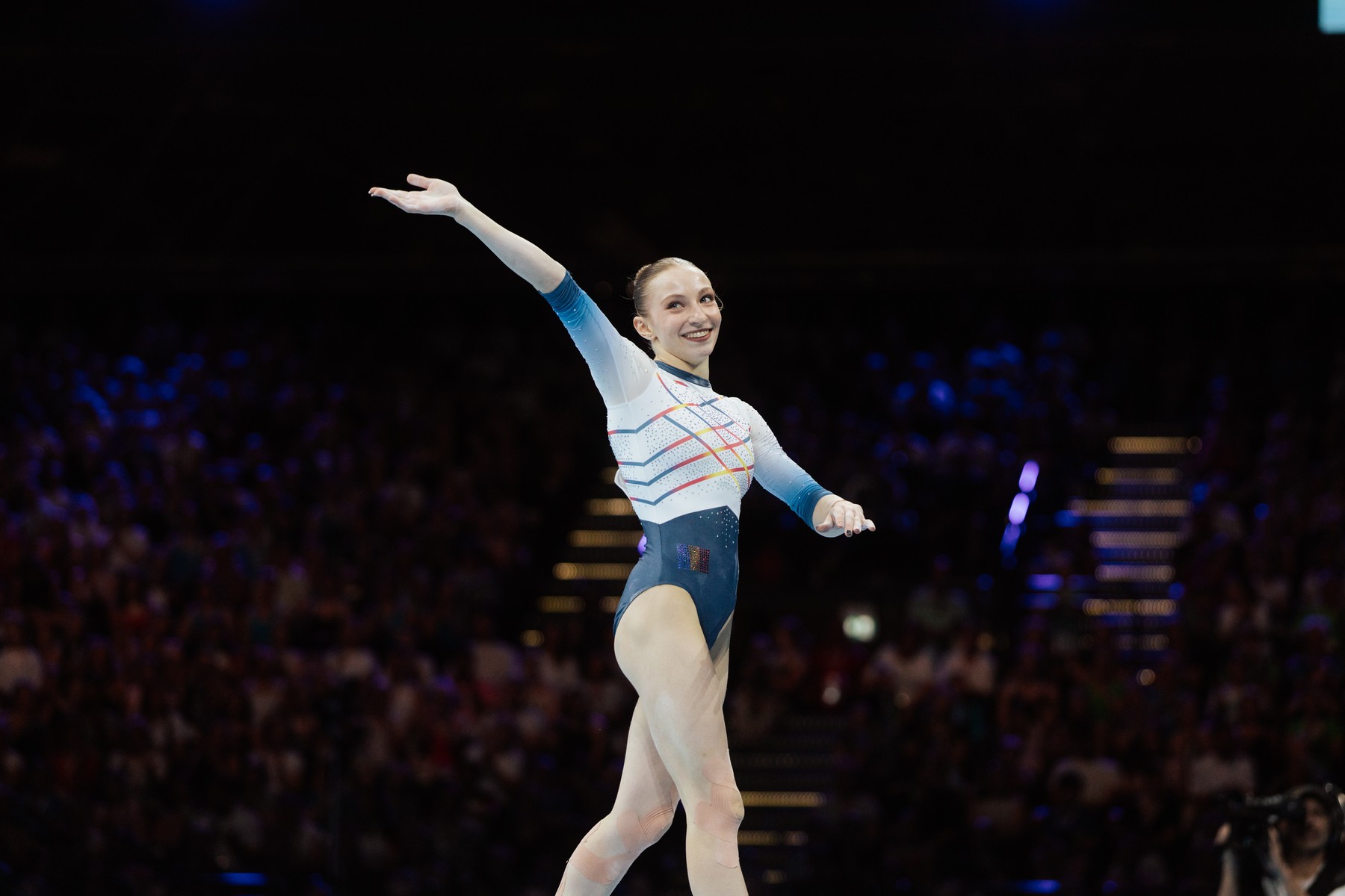 Ana Bărbosu a fost notată în finala de la sol cu 13,833, devansându-le pe italianca Manila Esposito, 13,700, şi pe Alba Petisco, 13,566. Ana Bărbosu este medaliată cu bronz la sol la, JO 2024, ea intrând în finala de la Leipzig cu a patra notă (13,600).