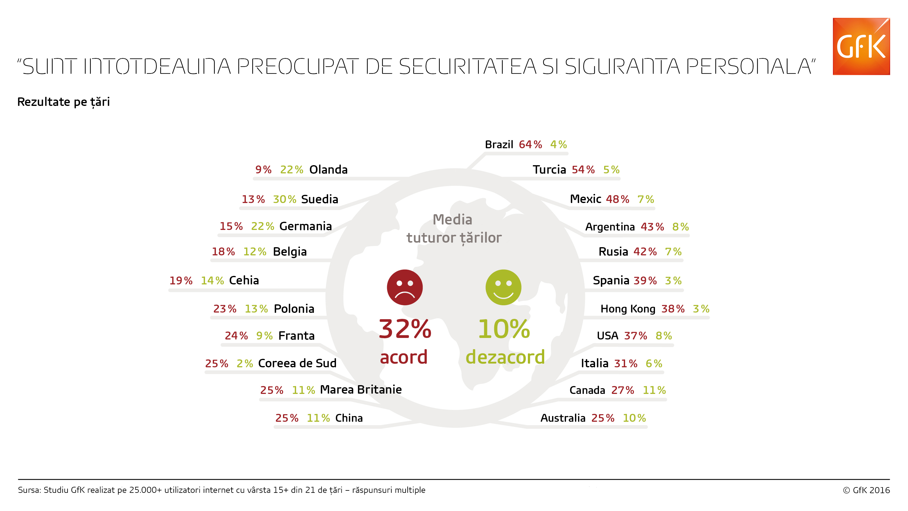 Compania GfK a chestionat online peste 25.000 de persoane despre cât de mult sunt de acord, pe o scară de 1 la 7 puncte, cu afirmația „Eu sunt mereu preocupat de siguranța și securitatea mea”.