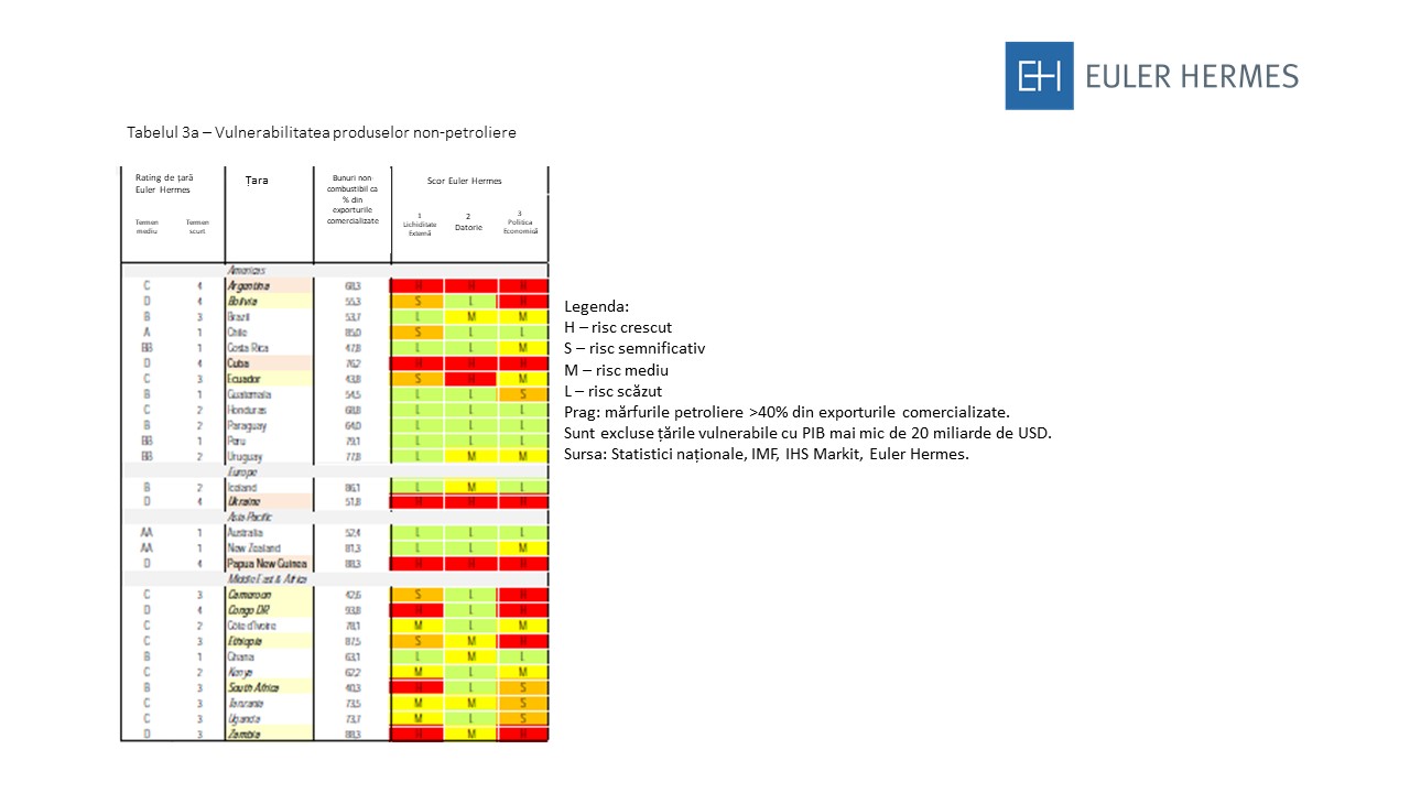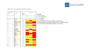 Această analiză scoate în evidență economiile care, în opinia Euler Hermes, ar putea fi afectate cel mai mult de înăsprirea bruscă a condițiilor de finanțare externe, de absența unei ajustări adecvate a politicilor și/sau de pierderea cererii de export. Acesta indică, de asemenea, că economiile mai vulnerabile ar trebui să scadă prețurile materiilor prime în mod neașteptat.