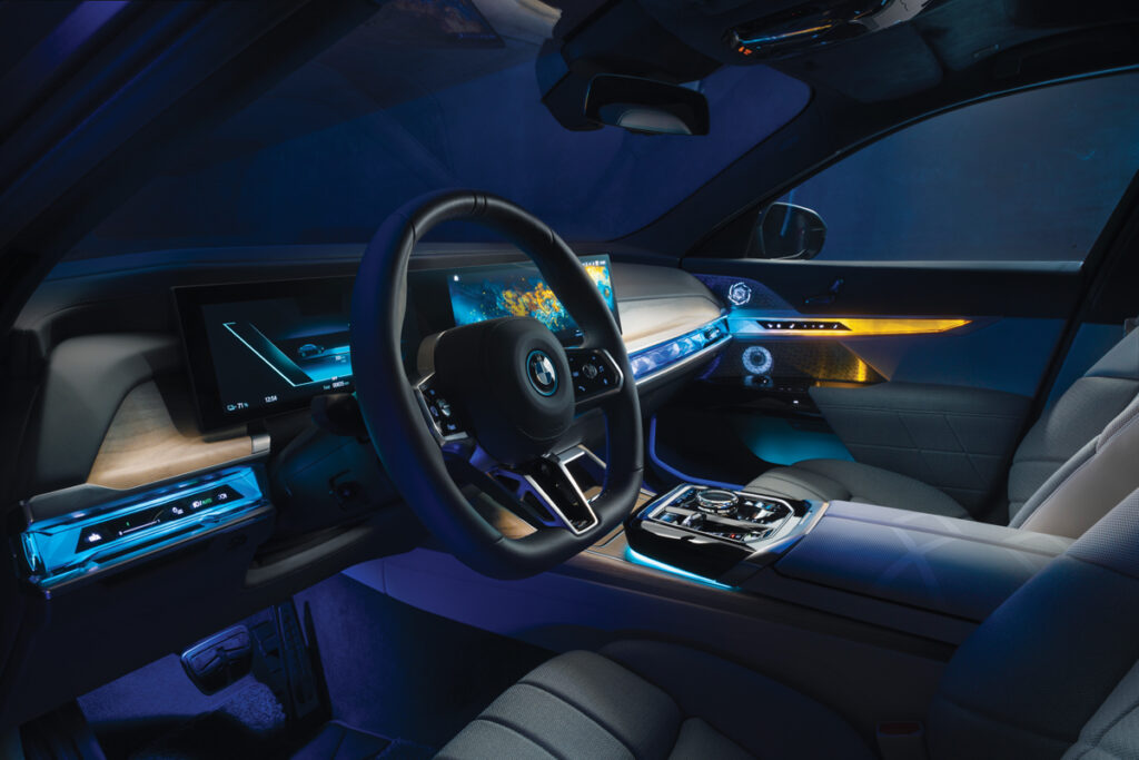 Cu toate că este o limuzină în care te poți bucura de confortul locurilor din spate, când te afli la volan poți experimenta puterea, agilitatea, dar și silențiozitatea cu care se deplasează. Atmosfera din interior este asigurată și de modurile de condus. Pe lângă răspunsul accelerației sau nivelul suspensiilor, modurile de condus influențează inclusiv iluminatul ambiental. Sistemul BMW IconicSounds, dezvoltat împreună cu celebrul compozitor Hans Zimmer, te introduce într-un univers sonor inedit, care adaptează o simfonie de sunete digitale în funcție de modul de conducere selectat.