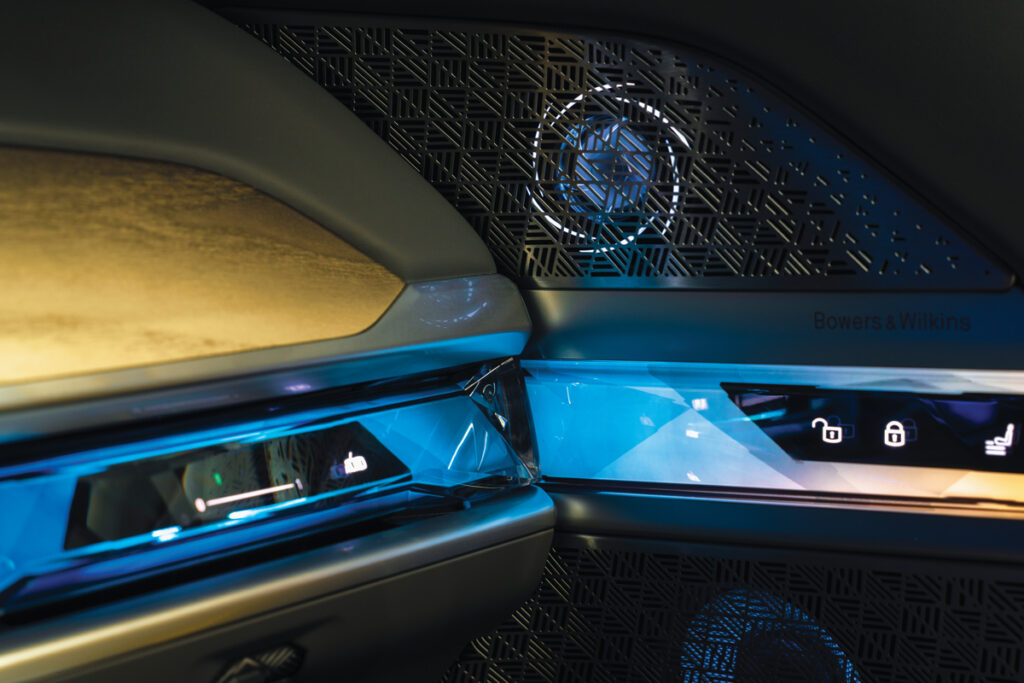 Dar să vorbim și despre cinematograful din mașină. Dacă te afli pe locul din spatele scaunului din dreapta, poți beneficia de un adevărat răsfăț. Scaunul din față se rabatează complet peste bord, iar scaunul tău se transformă într-un fotoliu foarte confortabil din care poți urmări filme pe un Theatre Screen de 31 de inchi și cu o rezoluție 8k ce coboară din plafonul mașinii. Experiența este completată de sistemul de sonorizare Bowers & Wilkins Dimond Surround care folosește 36 de boxe pentru o putere de 1.965 wați.