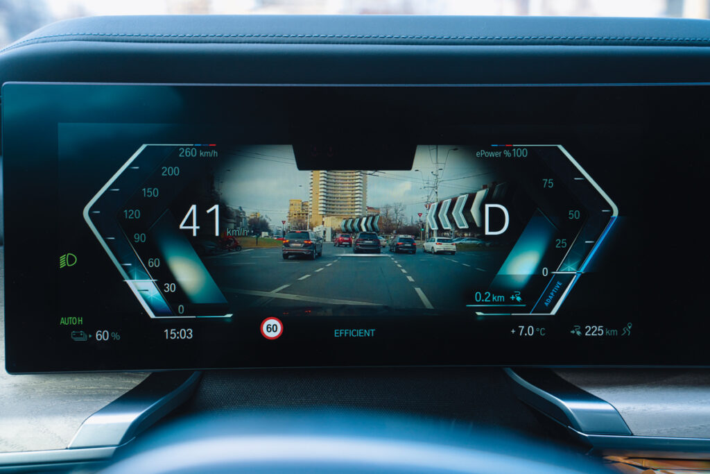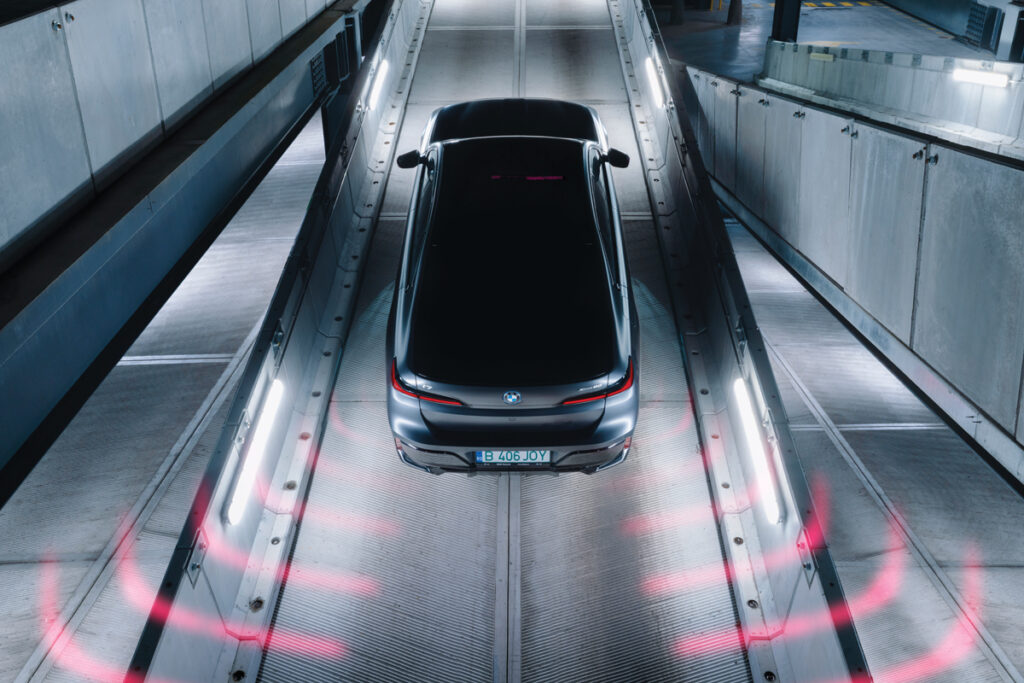 La cât de tehnică fusese până atunci întâlnirea, când am văzut în parcarea subterană mașina de culoare gri Frozen Deep metalic, am știut că o să fie o întâlnire specială. Primul test pe care l-am făcut și care mi-a dat o stare de neliniște, a fost să conduc noul i7 prin acea parcare, fără a depăși 36 de km/oră, să opresc, să o bag în marșarier și să las sistemul Reversing Assistant Professional să „conducă” mașina înapoi pe traseul inițial până în locul de parcare. Pe drum, a apărut Alex cu o cutie de carton pe care a pus-o în calea mașinii, aceasta evitând-o fără probleme, după care a parcat singură în locul de unde am plecat.