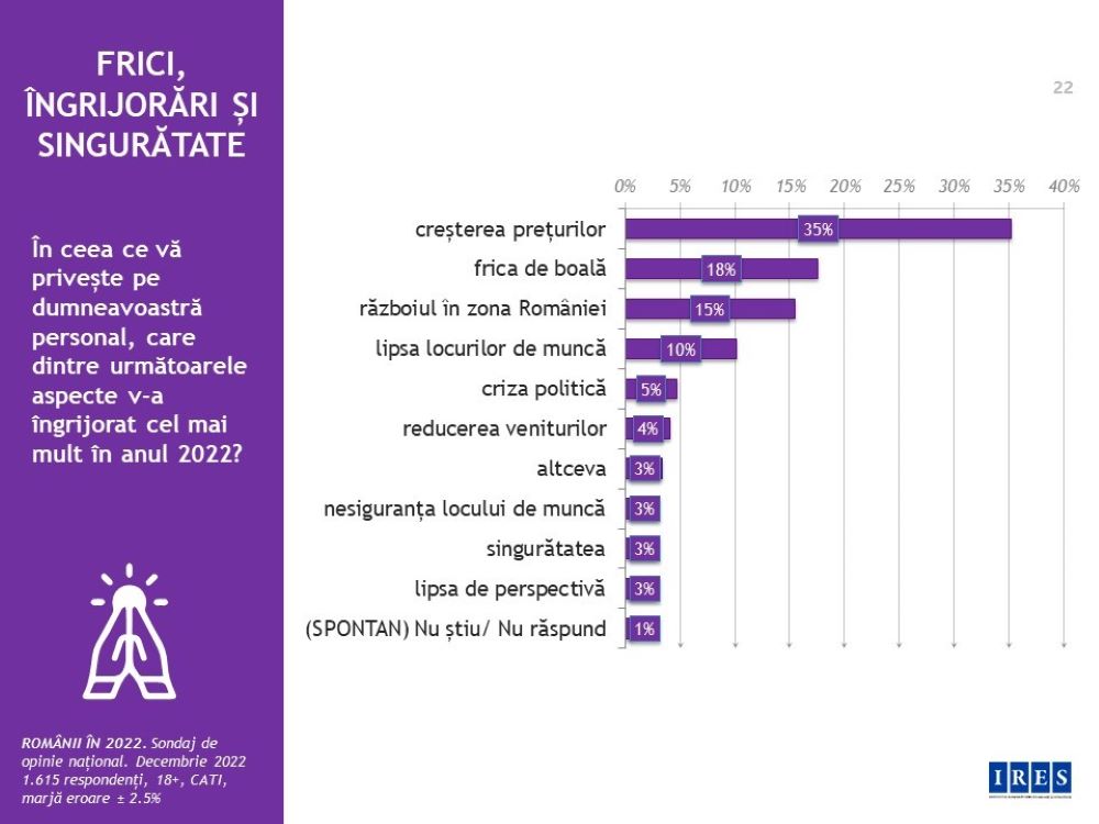 Creșterea prețurilor, starea de sănătate și războiul din regiune au fost principalii factori care au stat la baza îngrijorării românilor.