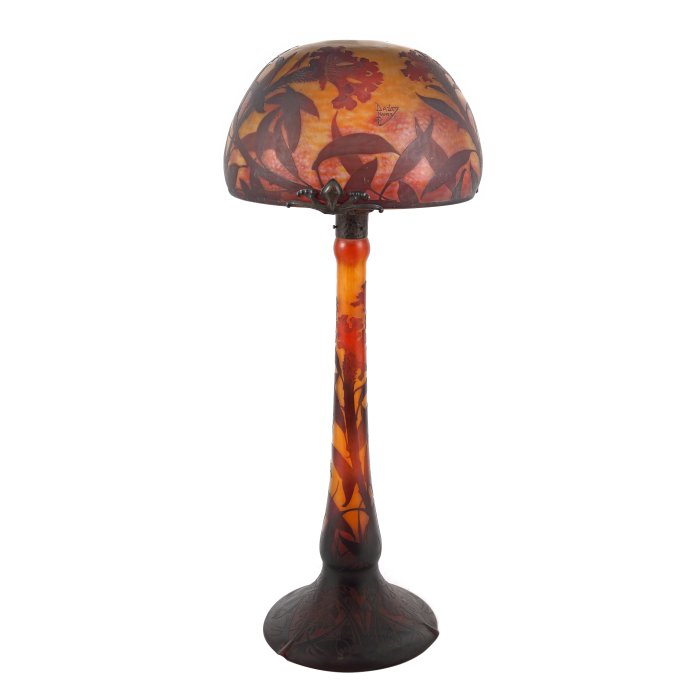6.000 – 8.000 de euro reprezintă estimarea pe care o are o monumentală lampă din sticlă stratificată Daum Nancy, probabil piesa de sticlărie de cele mai mari dimensiuni ce a apărut vreodată pe piața românească de artă decorativă. Piesa decorativă Art Nouveau, decorată cu flori roșii de Creasta Cocoșului, a fost realizată în 1900 și poartă semnătura, cunoscută în întreaga lume, a celebrei familii de sticlari Daum din Nancy.