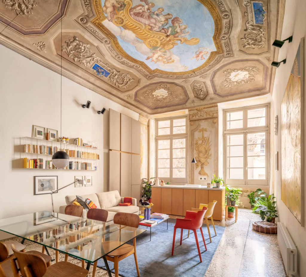 De atunci, etajul doi a rămas în paragină, până a fost descoperit de cei doi. Interiorul etajului a fost restaurat cu grijă, fiecare detaliu fiind recondiționat pentru a păstra autenticitatea epocii. Plafonul înalt, decorat cu fresce ce ilustrează scene mitologice, strălucește din nou în culorile sale vibrante. Pardoseala din mozaic, alcătuită din mii de piese minuscule, a fost refăcută, fiecare model fiind recreat cu o precizie meticuloasă. Asta în condițiile în care palatul se afla pe o piață istorică care face parte din Patrimoniul Mondial UNESCO, ceea ce înseamnă că orice modificări structurale sunt strict reglementate. Însă Rocca este expert în structuri istorice, deci știa prea bine ce are de făcut când a bătut palma pentru a achiziționa îmtregul etaj, împreună cu Dunphy. Au plătit 250.000 de euro pentru o ruină și s-au angajat într-o renovare care a durat doi ani și a costat încă 350.000 de euro, dar în cele din urmă au obținut un apartament de senzație, cu un dormitor de aproximativ 100 de metri pătrați.