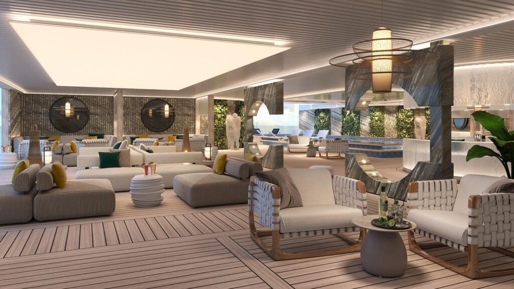 Nava numără 20 de localuri – restaurante și baruri repartizate pe cele 18 punți, o mini-berărie, port de agrement cu ambarcațiuni personale, trei piscine cu terase la soare, zonă pentru animale de companie, centru de afaceri și un salon de înfrumusețare. Oaspeții vor beneficia de game largi de opțiuni de divertisment, inclusiv o bibliotecă de 10.000 de cărți, cinematograf, studio de artă și pistă de bowling.