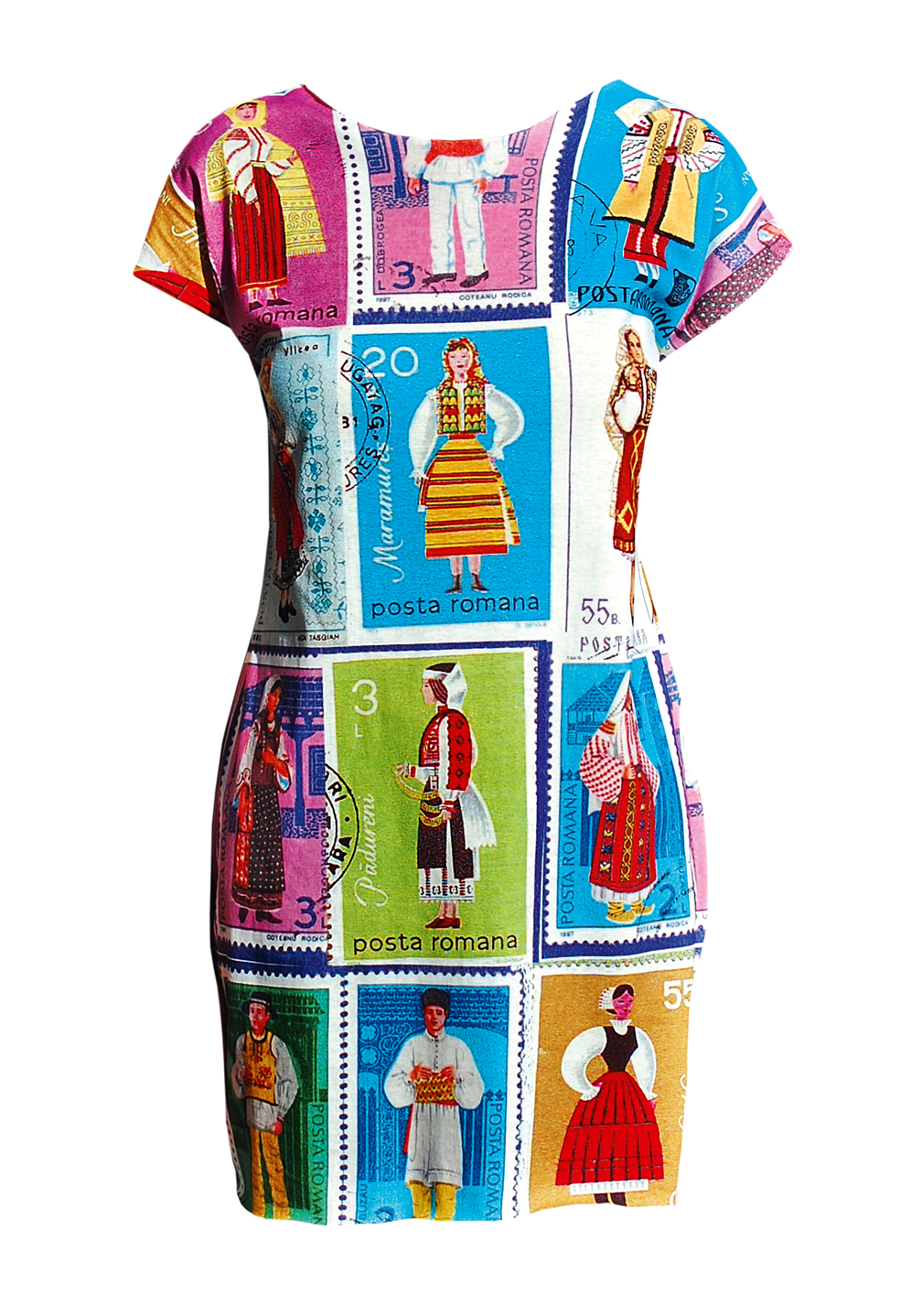 Prima rochie de-a Lanei Dumitru pe care am văzut-o mi-a amintit de clasoarele de pe vremuri, în care adunam celebrele mărci poștale cu desene animate, costume tradiționale românești sau sporturi de iarnă.