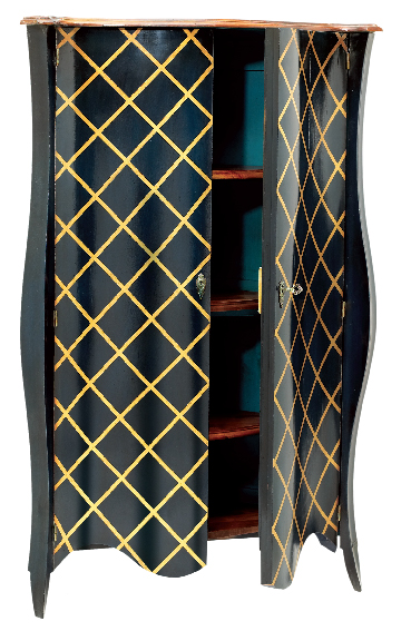 Piesa de mobilier de mai sus este creată sută la sută manual, în 42 de culori diferite, de la culoarea piersicii la verde deschis, iar materia primă este lemnul masiv de cireş, patinat şi lăcuit după tehnicile străvechi ale lui Grange.