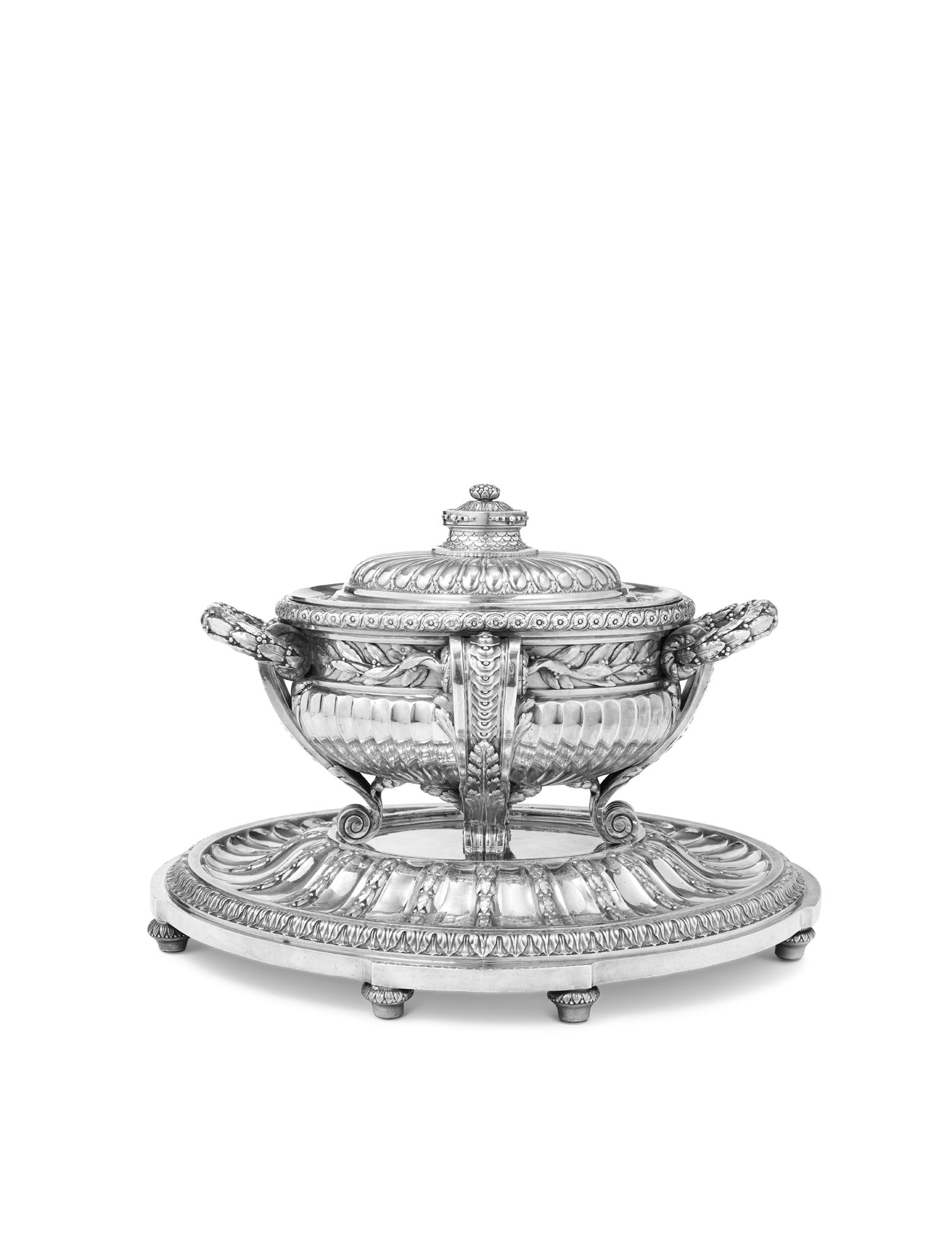 Cu o greutate de peste 11 kg și având toate componentele marcate cu aceeași serie, vasul de supă al țarinei Ecaterina a II-a scos mâine la licitație este evaluat la 800.000 – 1.200.000 de euro. Provine dintr-o epocă în care cultura franceză domina Europa – la curțile regale se vorbea franceza, moda era dictată de la Paris iar tendințele și noutățile din aproape toate domeniile porneau către lume cu binecuvântarea curții de la Versailles. Stilul francez al epocii în ceea ce privește decorarea mesei presupunea ca oaspeții să se servească singuri din vase așezate în apropierea lor – ceea ce înseamnă că serviciile de masă se îmbogățesc cu piese noi – supiere, sosiere și recipiente pentru ulei.