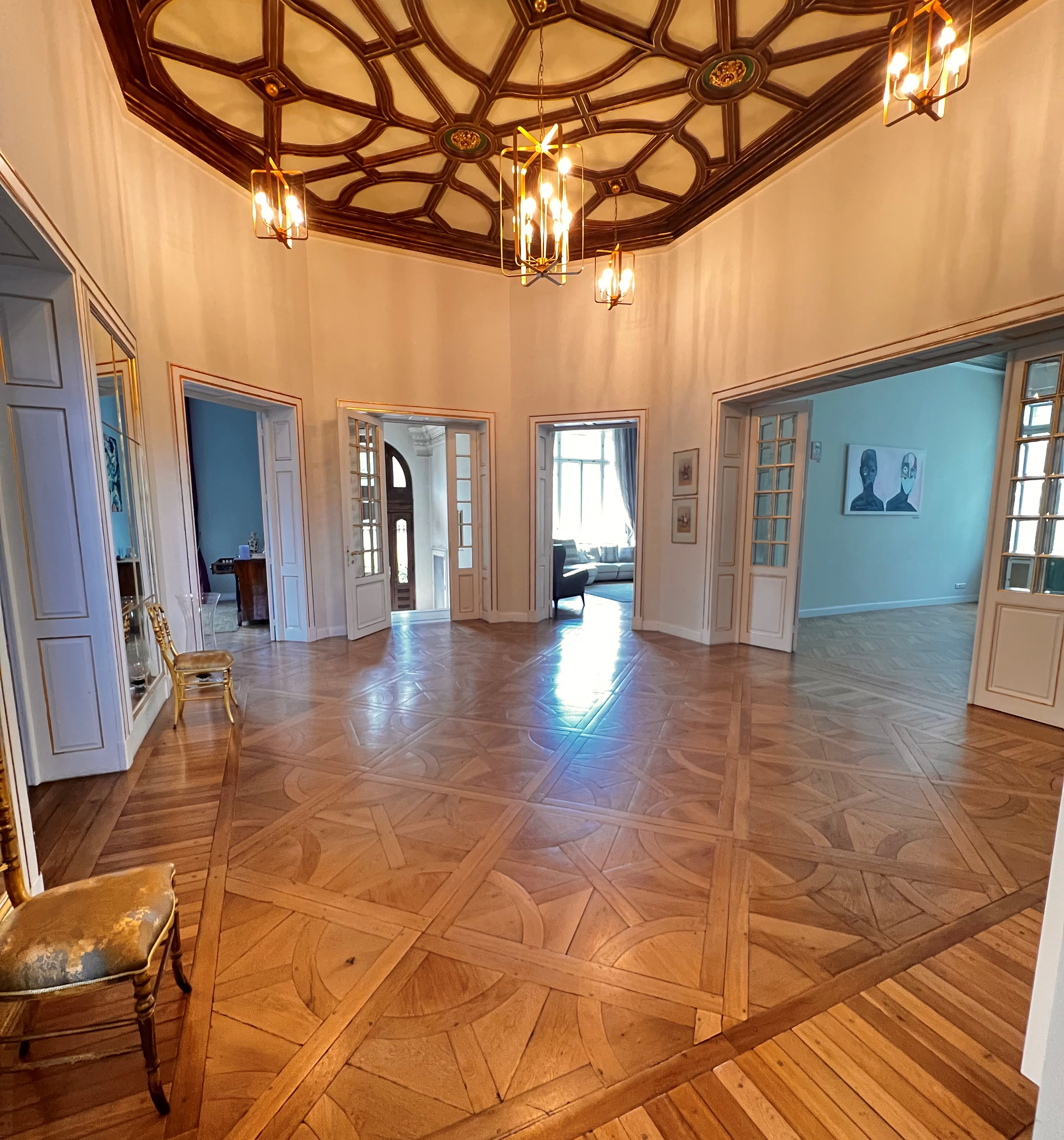 Este și povestea acestei proprietăți de excepție, construită după planurile arhitectului Paul Smărăndescu, încadrată ca imobil de patrimoniu, care a fost consolidată și restaurată.